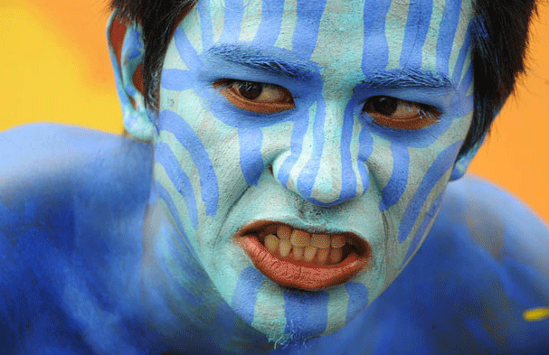یک فعال حقوق حیوانات اندونزی با الهام از فیلم "آواتار"با رنگ آمیزی خود به روند تخریب جنگل ها به عنوان زیست بوم " آرانگوتان " ها اعتراض می کند