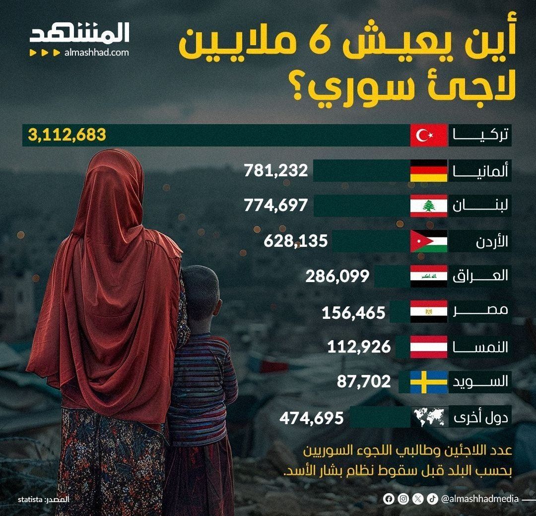 آوارگان سوریه در کدام کشورها و به چه تعداد ساکن بودند؟