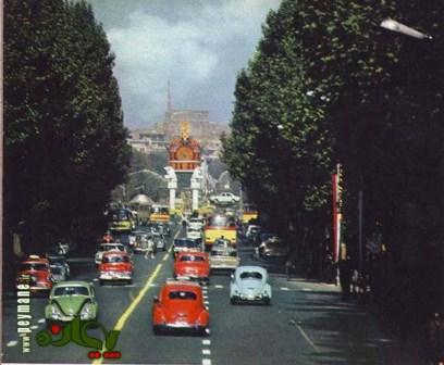 آنتن فرستنده تلویزیون در خیابان گاندی در عکس دیده میشود. یک اتو مبیل پیکان در سمت راست تاج در وسط میدان است که جایزه بلیط بخت آزمايی است. تاج به مناسبت جشن تاجگذاری بر پا شده است.با آنکه پیکان در آن تاريخ وارد كشور شده بود اما در خیابان هنوز فولکس واگن ماشین اصلی است.