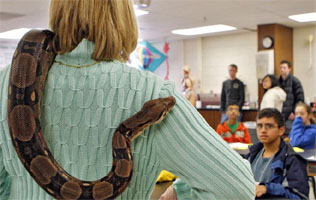 این روزنامه افزود: وی که حتی از مار بوآ نیز نمی ترسد، به عنوان بهترین معلم تگزاس معرفی شد.