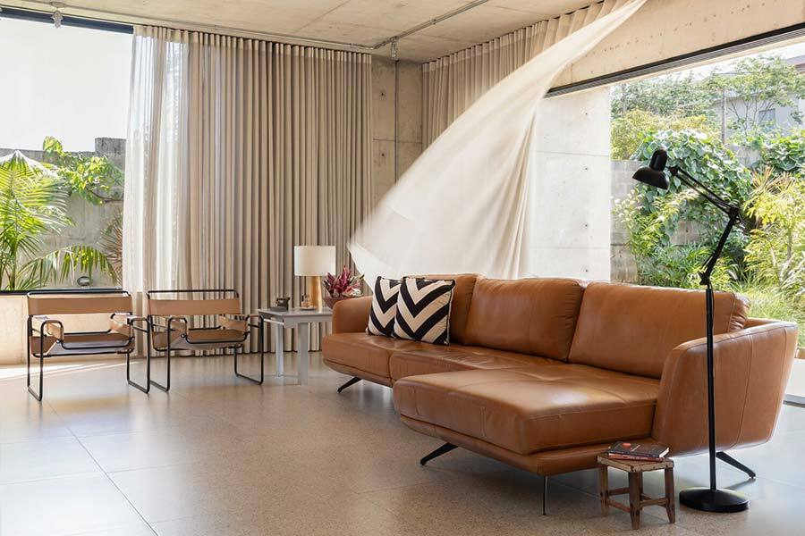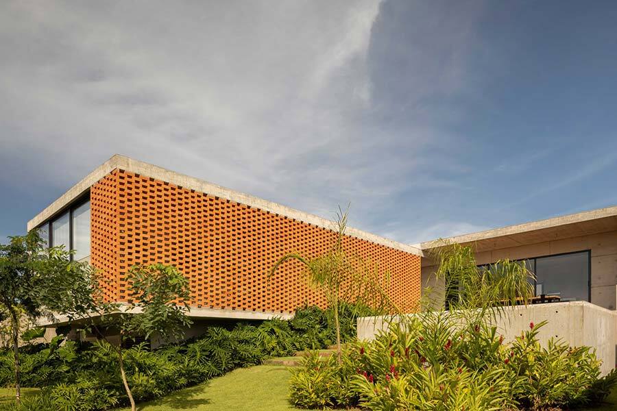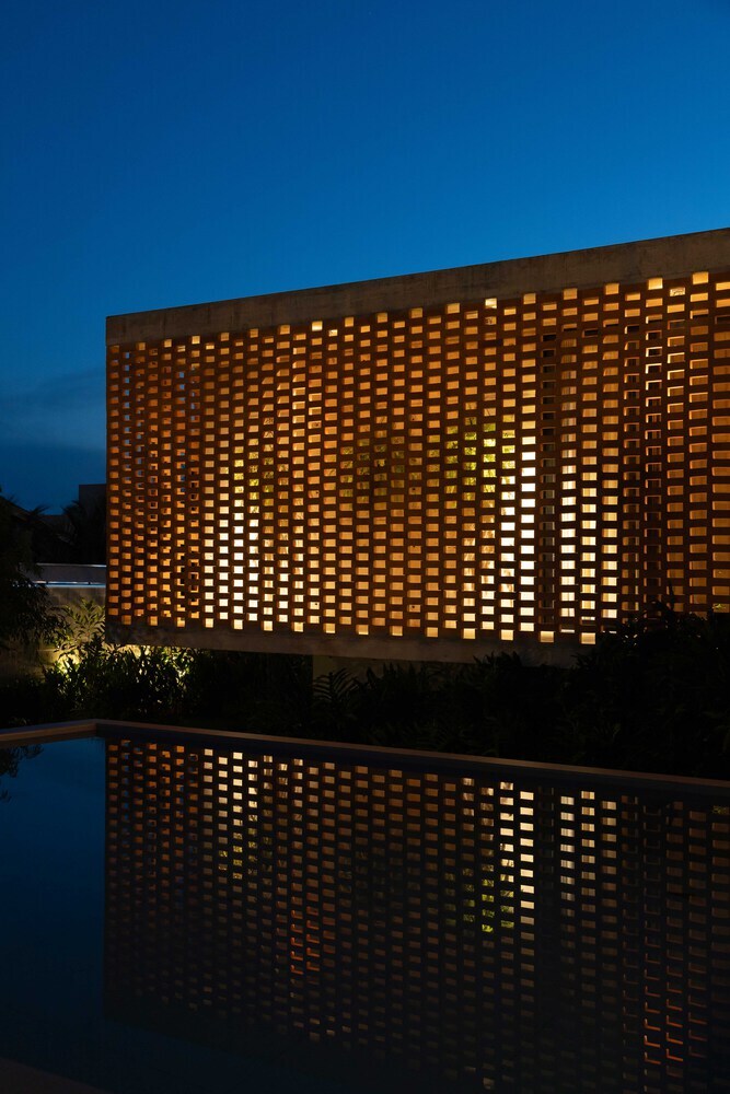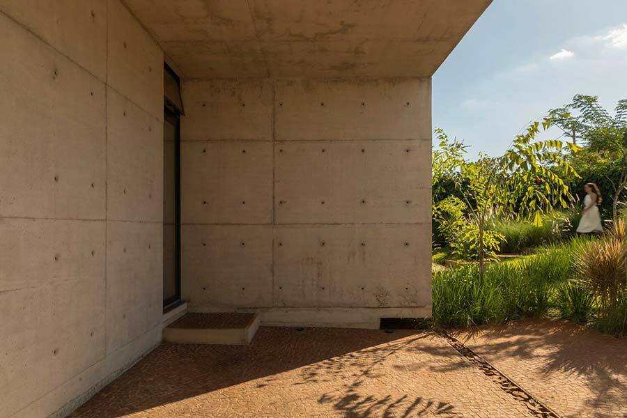 دیوارهای بتنی سازه ای که مطابق با زمین بالا می روند و شکل می گیرند، نه تنها یک عنصر ساختمانی هستند، بلکه مظهر فلسفه بروتالیسم در بیان سازه به عنوان بخشی جدایی ناپذیر از زیبایی شناسی ساختمان نیز می باشند. آجرهای توخالی که به طور استراتژیک در نمای اتاق خواب ها قرار گرفتهاند، به عنوان سایبان عمل می کنند، میزان تابش نور مستقیم را کنترل میکنند و یکی از مرتبط ترین اشیاء معماری: کوبوگو را تفسیر می کنند.