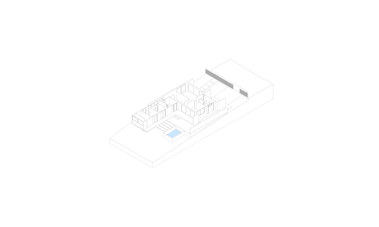 این پروژه طراحی ویلا تجربه زندگی هماهنگ با فضای باز را در اولویت قرار میدهد و عناصر طبیعی را در هنگام سازگاری خانه با توپوگرافی زمین در خود جای میدهد و به امتدادی از چشمانداز تبدیل میشود. استفاده از حجمهای نوری با هندسه خالص به پروژه اجازه داد تا یکنواختی و عقلانیت را در طراحی خود حفظ کند و خانه را به سه بلوک تقسیم کند: خدماتی، اجتماعی و خصوصی. خانهای ظاهراً ساده، اما از همان ابتدا داستانی پر از چالش و تلاش را در خود جای داده است.