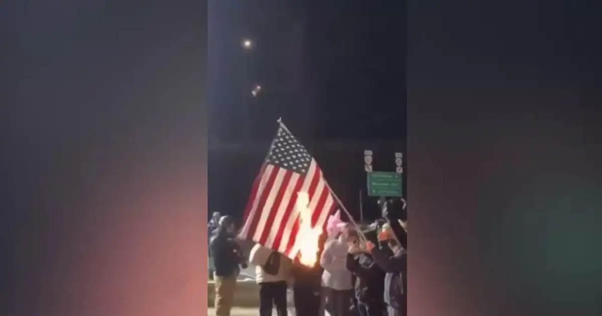 آتش زدن پرچم آمریکا توسط معترضان آمریکایی