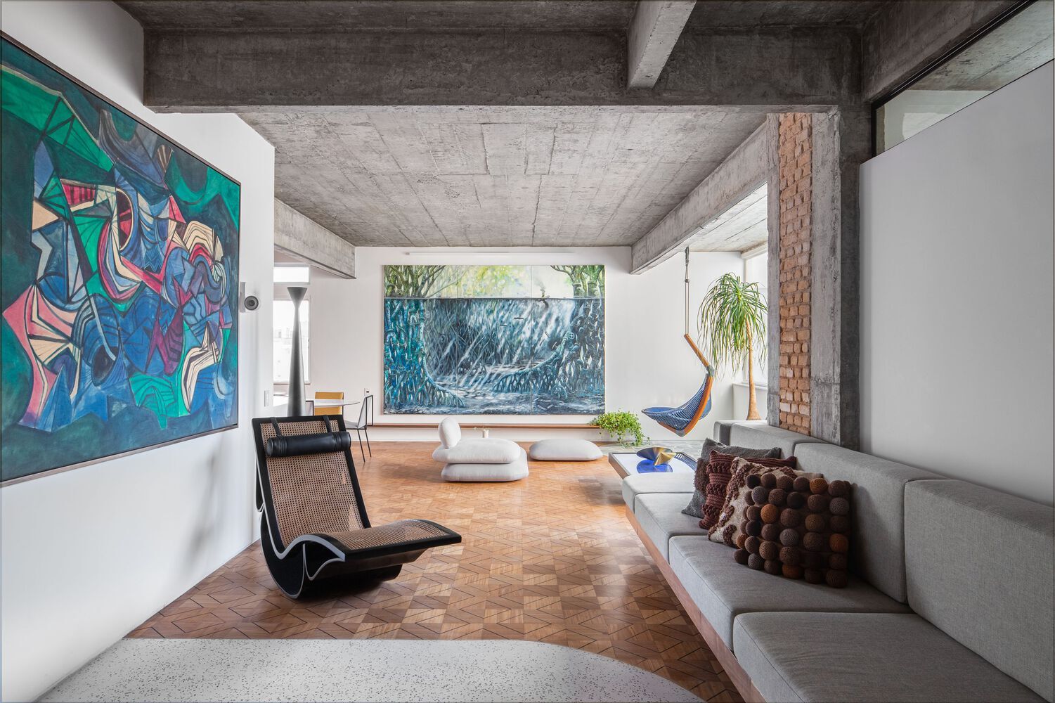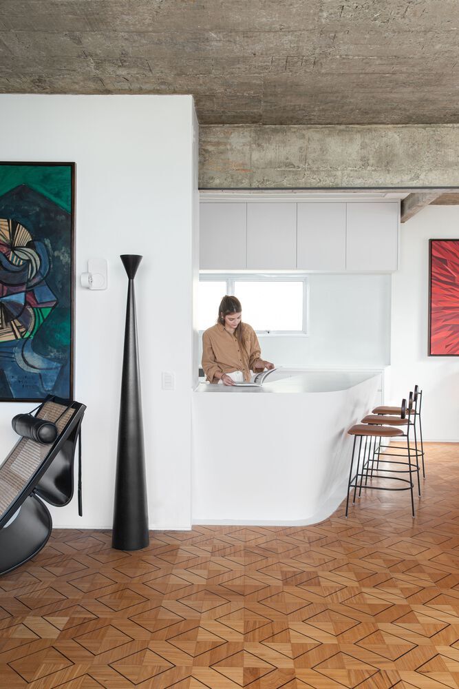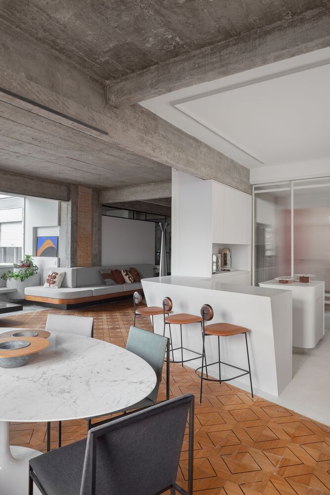 عصر ایران- این پروژه مربوط به طراحی داخلی یک آپارتمان مسکونی به سبک مدرنیستی/بروتالیستی در کشور برزیل می شود. اینجا ترکیب جالبی از نشانه های بروتال و رویکردهای مدرنیستی را مشاهده می کنیم. جذاب ترین عنصر طراحی به سقف سازه مربوط می شود که بتن بدون پوشش، قدرت سبک بروتالیست را بر مخاطبان خود عرضه می کند.