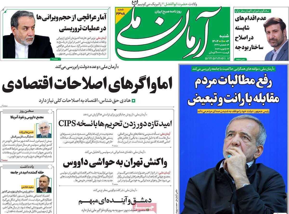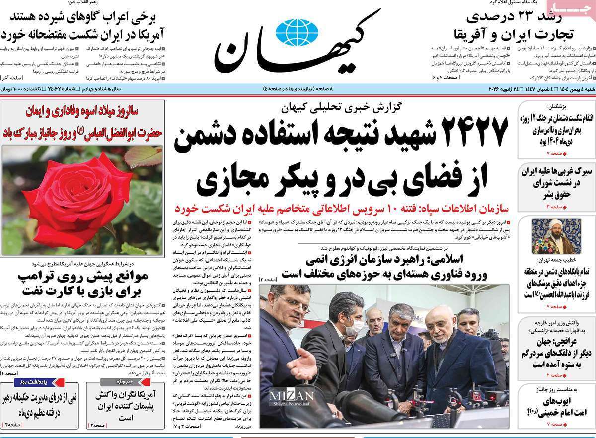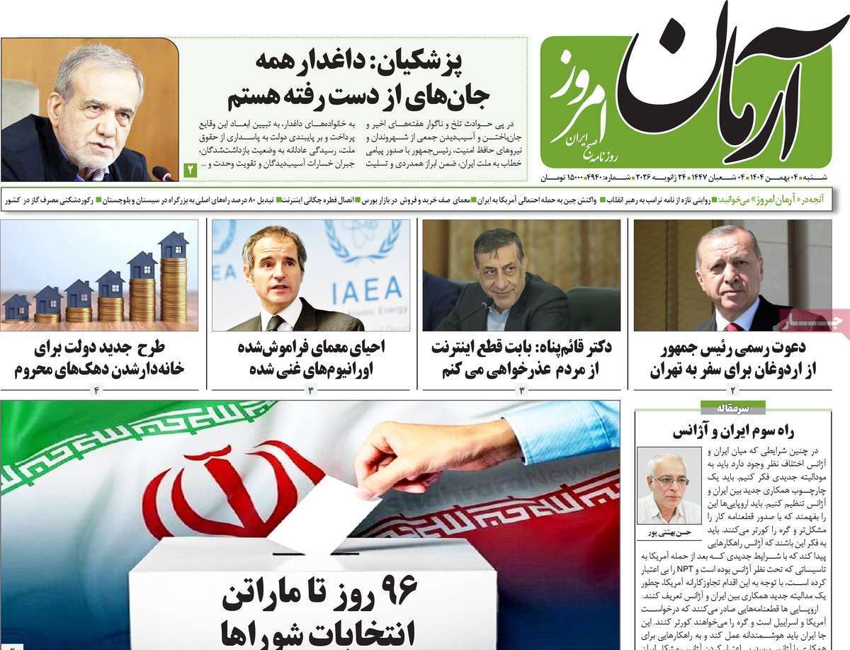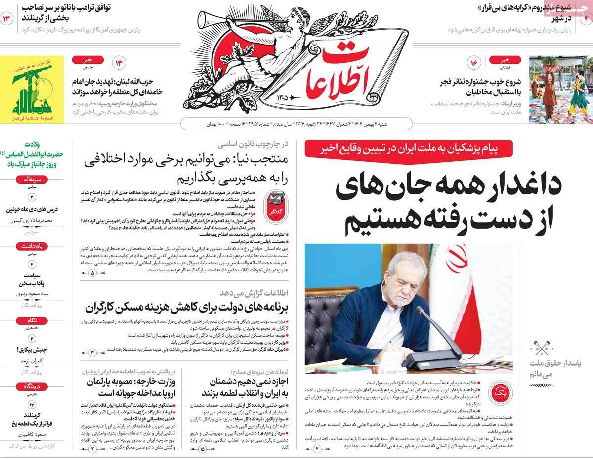صفحه اول روزنامه های صبح شنبه 4 بهمن 1404