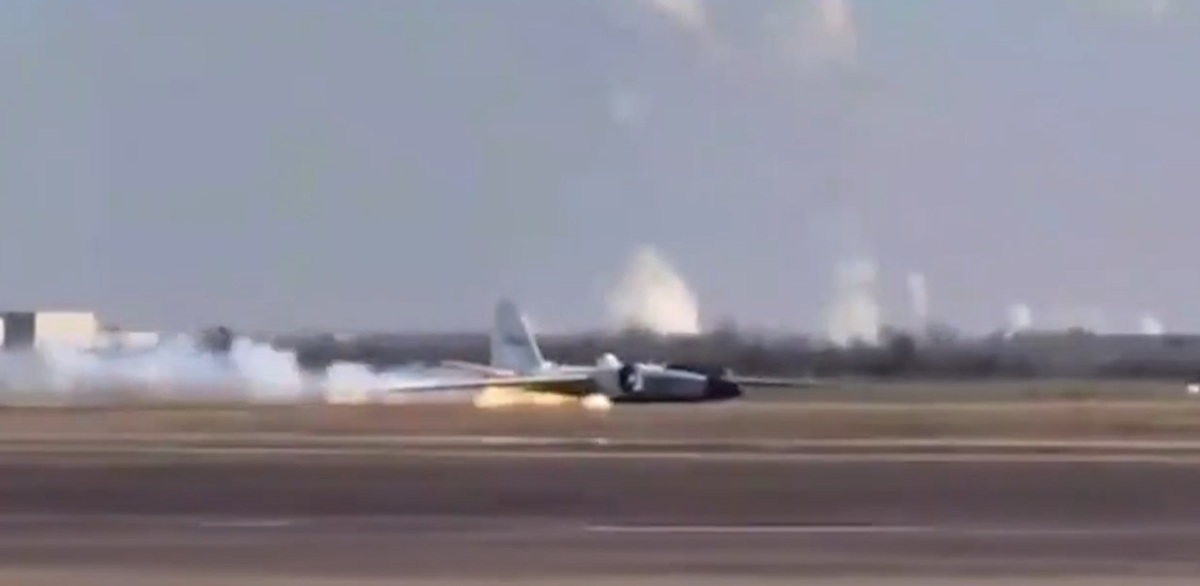 هواپیمای ناسا هنگام فرود اضطراری در شهر هیوستون، با شکم روی باند فرودگاه نشست
