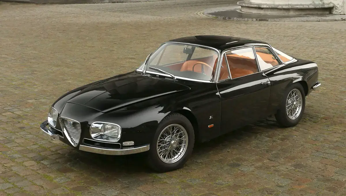 نمای بدنه آلومینیومی و کلاسیک خودروی نایاب آلفارومئو ۲۶۰۰ اسپریت زاگاتو (Alfa Romeo 2600 Sprint Zagato) مدل دهه ۱۹۶۰.