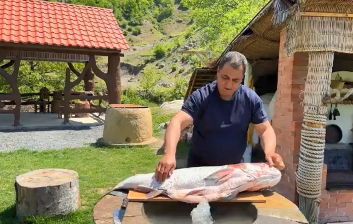 ماهی پس از پوشانده شدن با لایهای ضخیم از نمک، بهصورت مستقیم روی آتش قرار میگیرد تا بافتی نرم و طعمی خاص پیدا کند. این روش سنتی پخت، بدون استفاده از تجهیزات مدرن انجام میشود و بخشی از فرهنگ غذایی روستایی منطقه را به تصویر میکشد. فضای ساده روستا و شعلههای آتش، حالوهوایی اصیل و تماشایی به این صحنه بخشیده است.