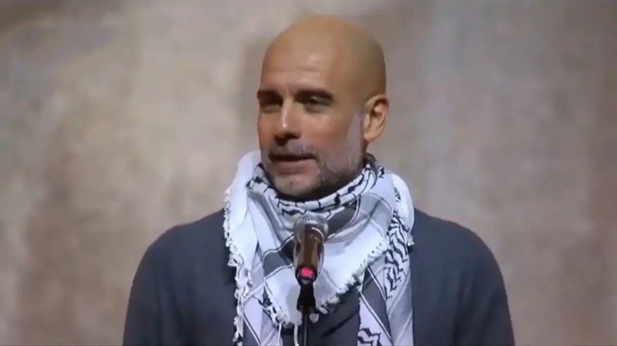 پپ گواردیولا، سرمربی منچسترسیتی، در مراسمی فرهنگی در بارسلونا با پوشیدن چفیه حمایت خود از فلسطین و مسائل عادلانه انسانی را به صورت علنی اعلام کرد.