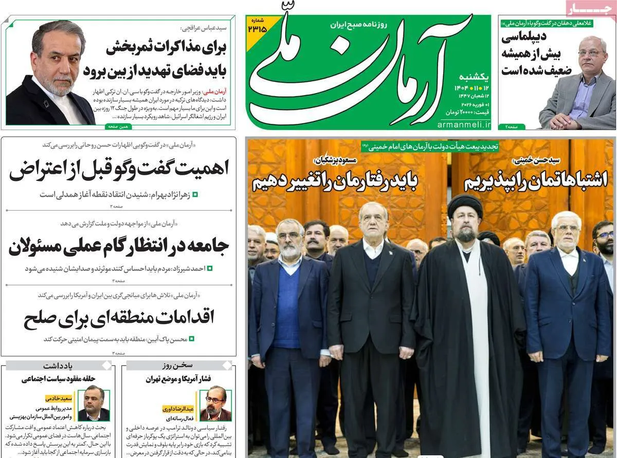 تصویر صفحه اول روزنامه های صبح یک شنبه 12 بهمن 1404 را ببینید.
