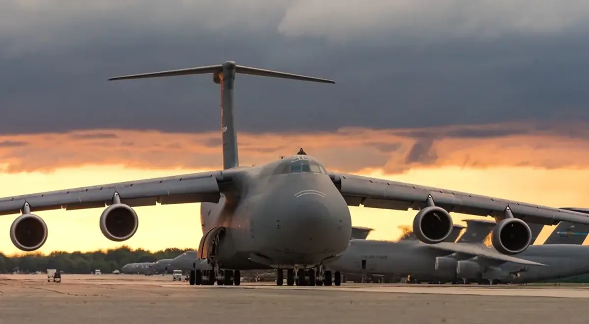 پرواز هواپیمای ترابری فوقسنگین C-5M از پایگاه رامشتاین آلمان
