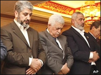 چند ماه قبل، رييس تشکيلات خودگردان به منظور خاتمه دادن به بحران ناشی از توقف کمک های خارجی تشکيل يک دولت ائتلافی با شرکت حماس و فتح را پيشنهاد کرد اما تا کنون اصرار حماس بر رد شرايط مورد نظر غرب مانع از اجرای اين پيشنهاد شده بود.