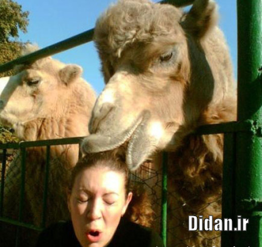 شتری در حال خوردن موهای سر یک زن ( عکس )