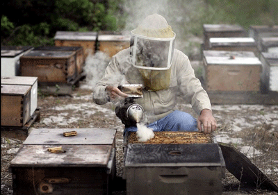 جمع آوری عسل از کندوهای سرمازده آمریکا