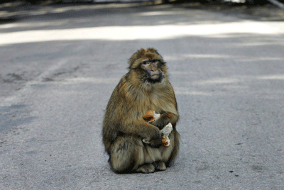 بوزينه دم کوتاه در انتظار دريافت غذاي بيشتر از عابران - مغرب