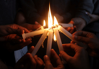 روشن کردن شمع به ياد جان باختگان انفجار قطار در هند