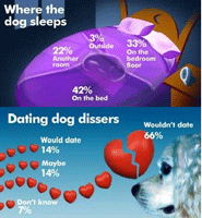 به گزارش عصرايران (asriran.com)، روزنامه "واشنگتن تایمز" چاپ آمریکا اعلام کرد: 42 درصد از کسانی که پذیرفته بودند سگ های بی سرپرست را به خانه بیاورند، خواهان خوابیدن سگ ها در رختخواب مشترک بودند، 33 درصد روی زمین اتاق خواب را محلی مناسب برای این حیوان عنوان کردند، 22 درصد اتاق دیگر را مکان مختص سگ ها اعلام کردند و سه درصد باقی مانده معتقد بودند که این حیوان باید بیرون از خانه بخوابد.
