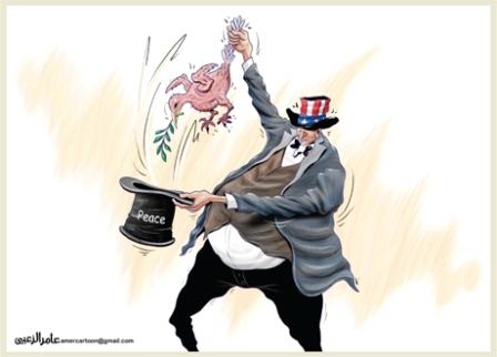 آمریکا و صلح خاورمیانه (کاریکاتور)
