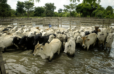 فرار گاوها از سیل بولیوی