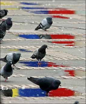 راهپيمايي کبوتران در خيابان در کلمبيا