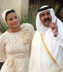 شیخ حمد بن خلیفه آل ثانی امیر قطر و همسرش در سفر دیروز جمعه خود به لبنان.
