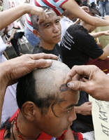 دانشجویان فیلیپینی در حمایت از کشاورزان کشور خود با تراشیدن موی سرشان و اعتصاب غذا، خواستار اصلاح قانون مالیاتی این قشر شدند.