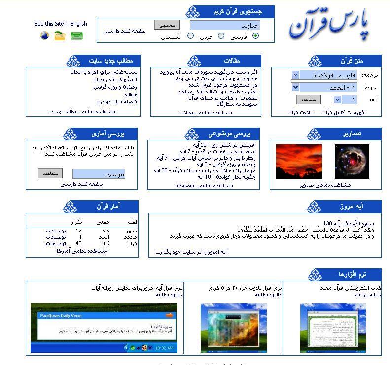 امروز قصد دارم سايتي براي قرآن پژوهي معرفي كنم كه انصافا در عين سادگي،بسيار سودمند و مفيد است.در اين سايت علاوه بر خواندن متن قرآن به زبان هاي مختلف،ميتوانيد چند نرم افزار ساده و كارا را نيز دانلود نماييد.