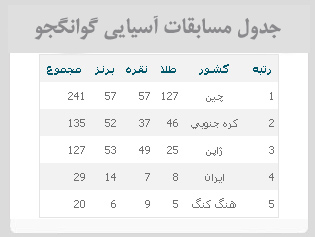 جدول مسابقات آسيايي گوانگجو