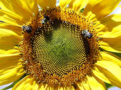 سه زنبور بر روي گل آفتابگردان
