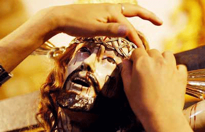 آرايش مجسمه مسيح براي شركت در مراسم يكشنبه مقدس