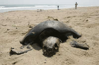 جسد لاك پشت زيتوني در ساحل كنارك در هند
