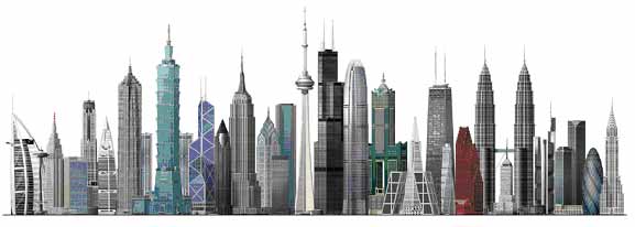 عصر ایران: در سراسر تاريخ معماري تلاشي مکرر براي بلندي و عظمت وجود داشته است. هزاران کارگر براي ساخت اهرام باستاني مصر، کليساهاي جامع اروپا و برج هاي بيشماري زحمت کشيدند و تمام اين تلاش ها جهت خلق بناهاي حيرت آور بوده است. اصولاً مردم آسمان خراش ها را بدليل مناسب بودن و يا منافع آن مي سازند چون شما مي توانيد املاک بسياري را از يک قطعه زمين نسبتاً کوچک بسازيد. اما گاهي اوقات نفس عمل و ابهت و بزرگي، نقش مهمي را در حوزه ساخت بازي مي کند که در تمدن امروزي بيشتر متداول است.