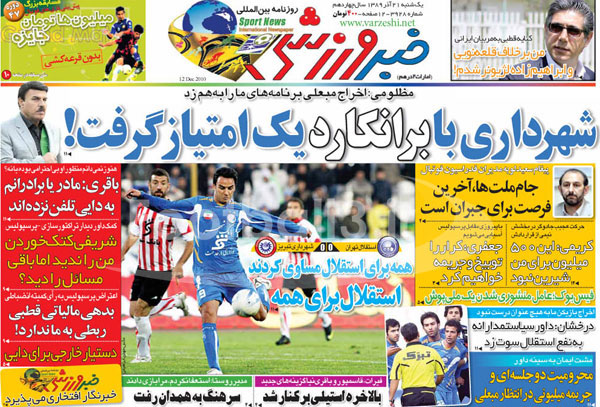 صفحه نخست روزنامه هاي ورزشي امروز (عكس)