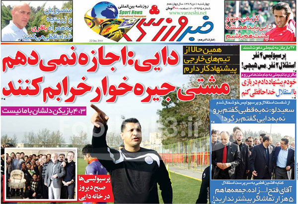 صفحه نخست روزنامه هاي ورزشي امروز (عكس)