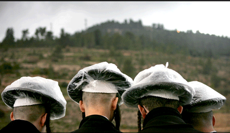 يهوديان ارتدوكس در حال انجام مراسم مذهبي در بيت المقدس