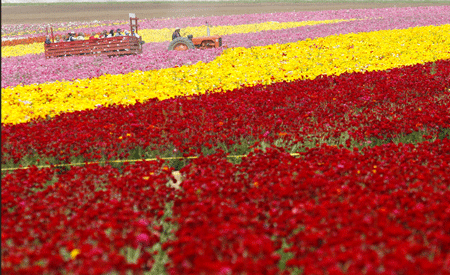 تراكتور حامل بازديد كنندگان از مزرعه گل