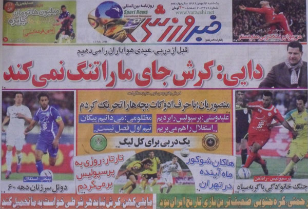 صفحه نخست روزنامه هاي ورزشي 24 بهمن (عكس)