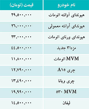 قیمت برخی از خودروهای داخلی