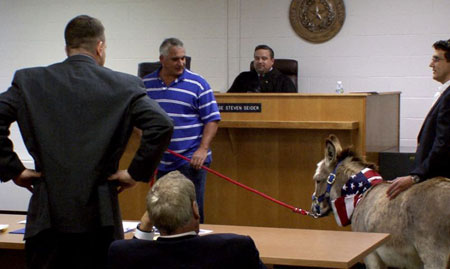 دالاس- وقتي وکیل مدافع ، براي اثبات حقانيت موكل اش ، الاغ به دادگاه مي آورد / عكس از :مترو