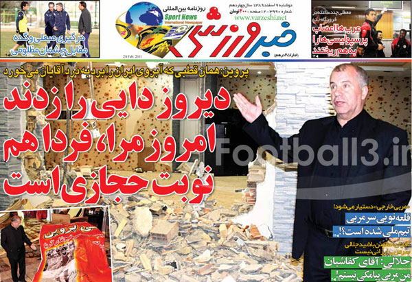 صفحه نخست روزنامه هاي ورزشي 9 اسفند (عكس)