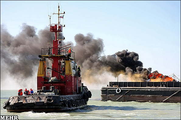 مانور مقابله با آلودگی در دریا(تصویری)