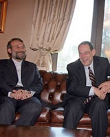 علي لاريجاني در کنفرانس مطبوعاتی مشترک با عبدالله گل، وزیر امور خارجه ترکیه و خاویر سولانا، مسئول سیاست خارجی اتحادیه اروپا افزود: به همین خاطرمیتوان گفت بهترین رهیافت در حل موضوعات از طریق مذاکره پذیرفتن قواعد بینالمللی و حقوقی مربوطه است.