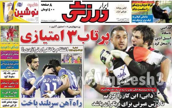صفحه نخست روزنامه های ورزشی امروز (عکس)