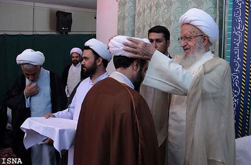 عمامه گذاری توسط آیت الله مکارم (عکس)