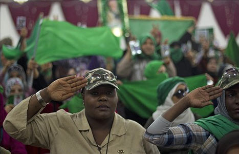 «موسی ابراهیم» سخنگوی رژیم لیبی اعلام کرده است: زنان هم اکنون در جنگ علیه ناتو مشارکت جدی دارند این زنان آموزشهای خوبی را برای انجام ماموریتهایشان دیده اند که مهمترین ماموریت آنها دفاع از منازل است.