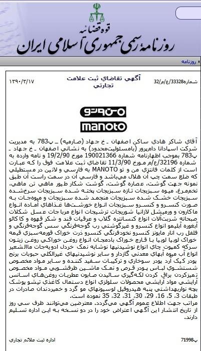 ثبت لوگوی شبکه ماهواره ای "من و تو" که برنامه های خود را از لندن پخش می کند در روزنامه رسمی کشور.