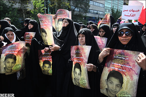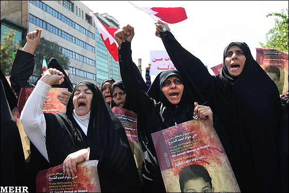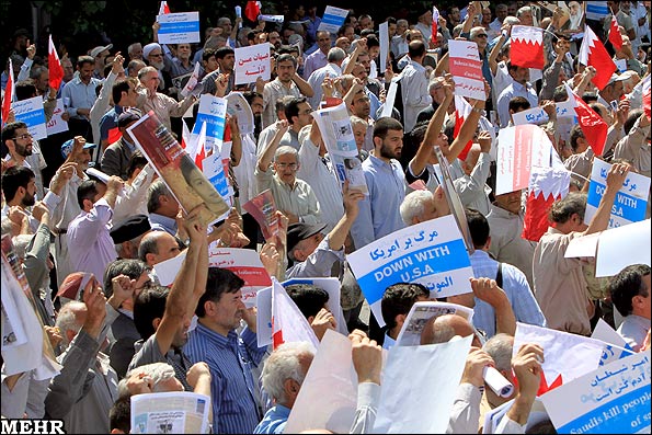 نمازگزاران تهرانی در پایان اقامه نماز جمعه این هفته در محکومیت جنایات آل خلیفه راهپیمایی کردند.