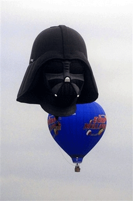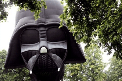 يك بالن به شكل كلاهخود "دارت وادر"، شخصيت منفي جنگ هاي ستاره اي – جشنواره بالن ها در بلژيك