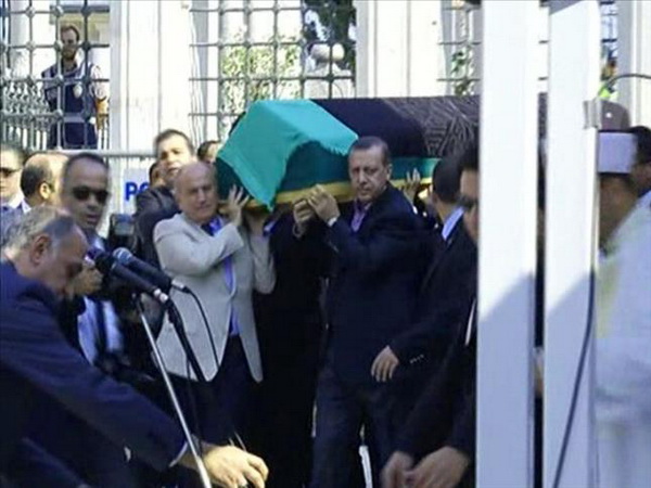 تصویر/ نخست‌وزیر تركیه زیر تابوت مادرش
