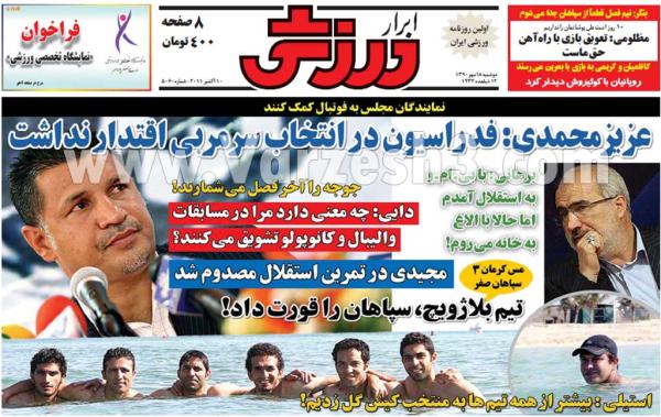 صفحه نخست روزنامه های ورزشی امروز (عکس)